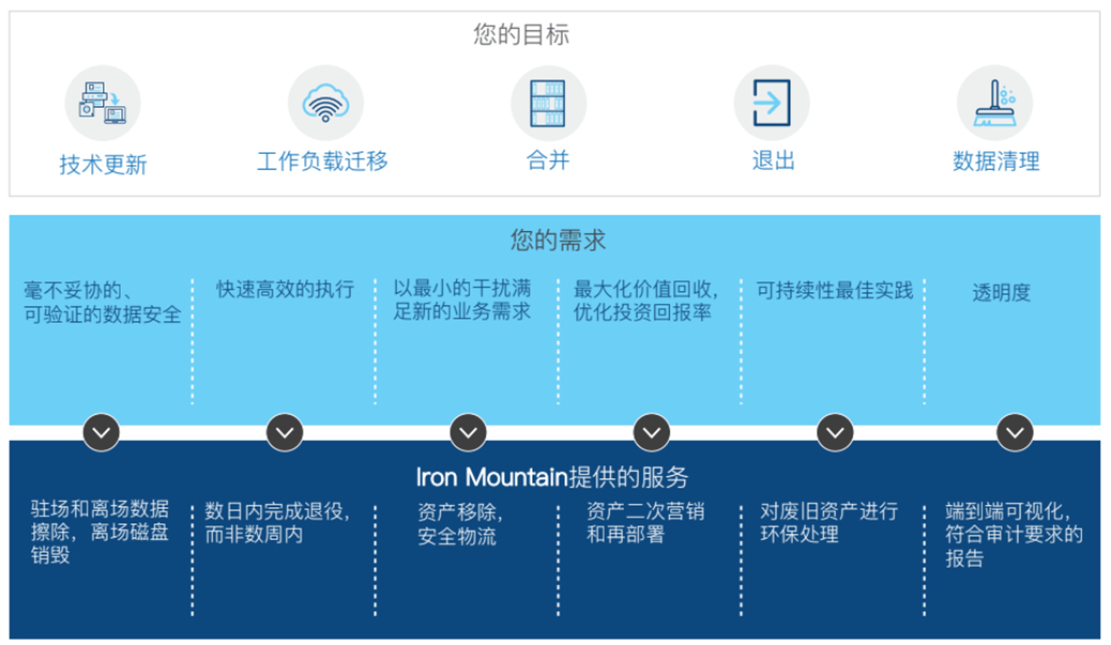 无论您的运营足迹有多大或多复杂,Iron Mountain的资产生命周期管理都具备丰富的经验、实体资源和全球影响力,以满足您对数据中心ITAD的需求。